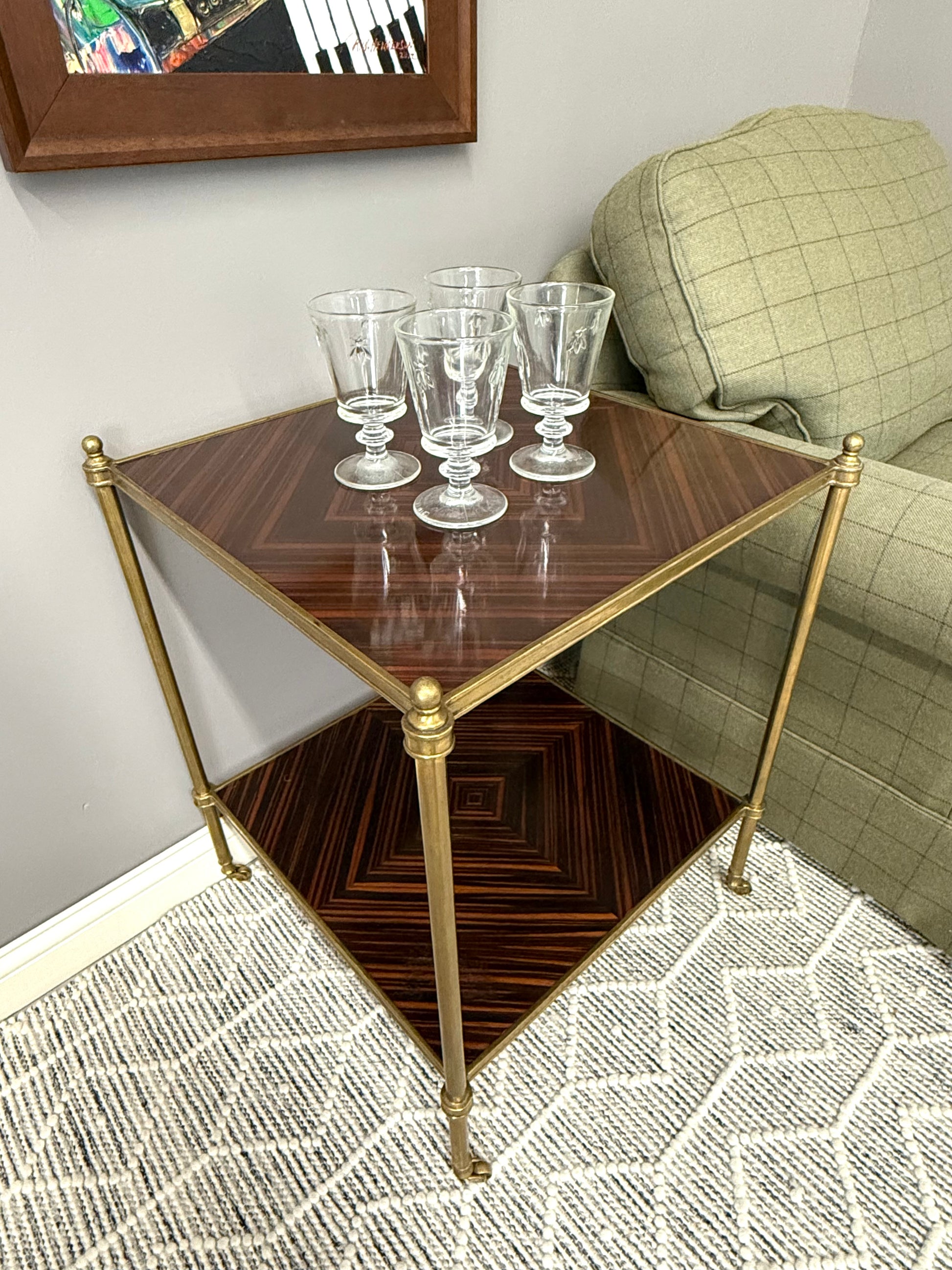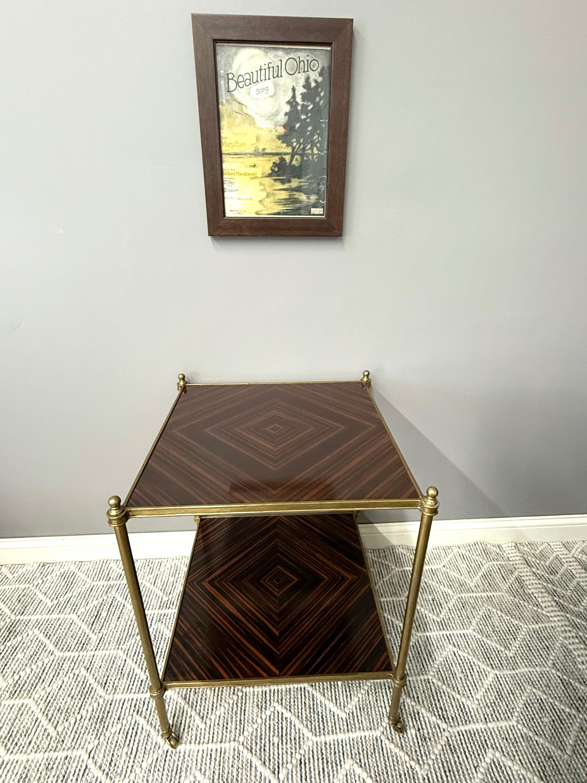 Luxury beverage cart or side table made by century furniture. Brass wheels, wood grain is stunning!