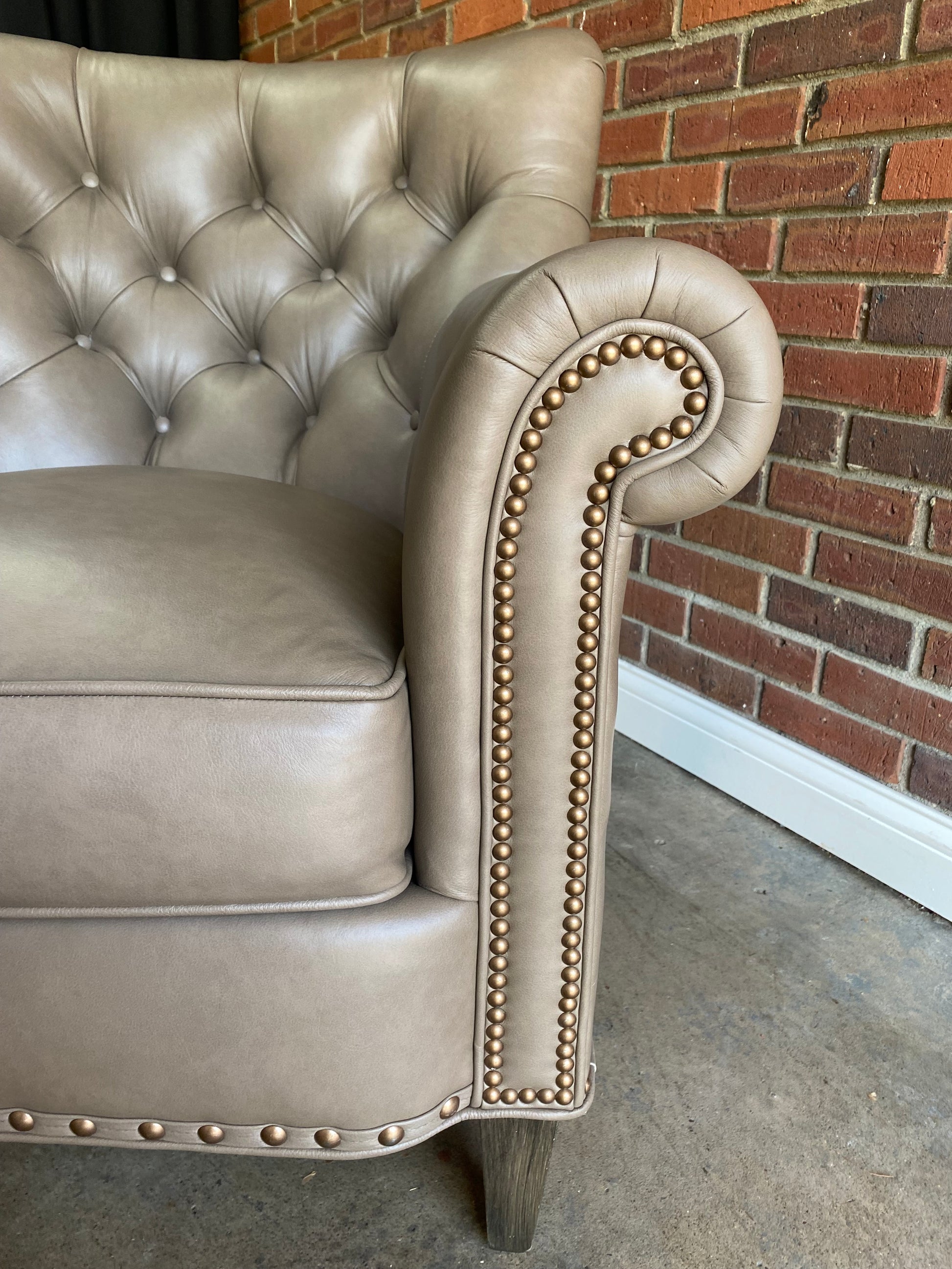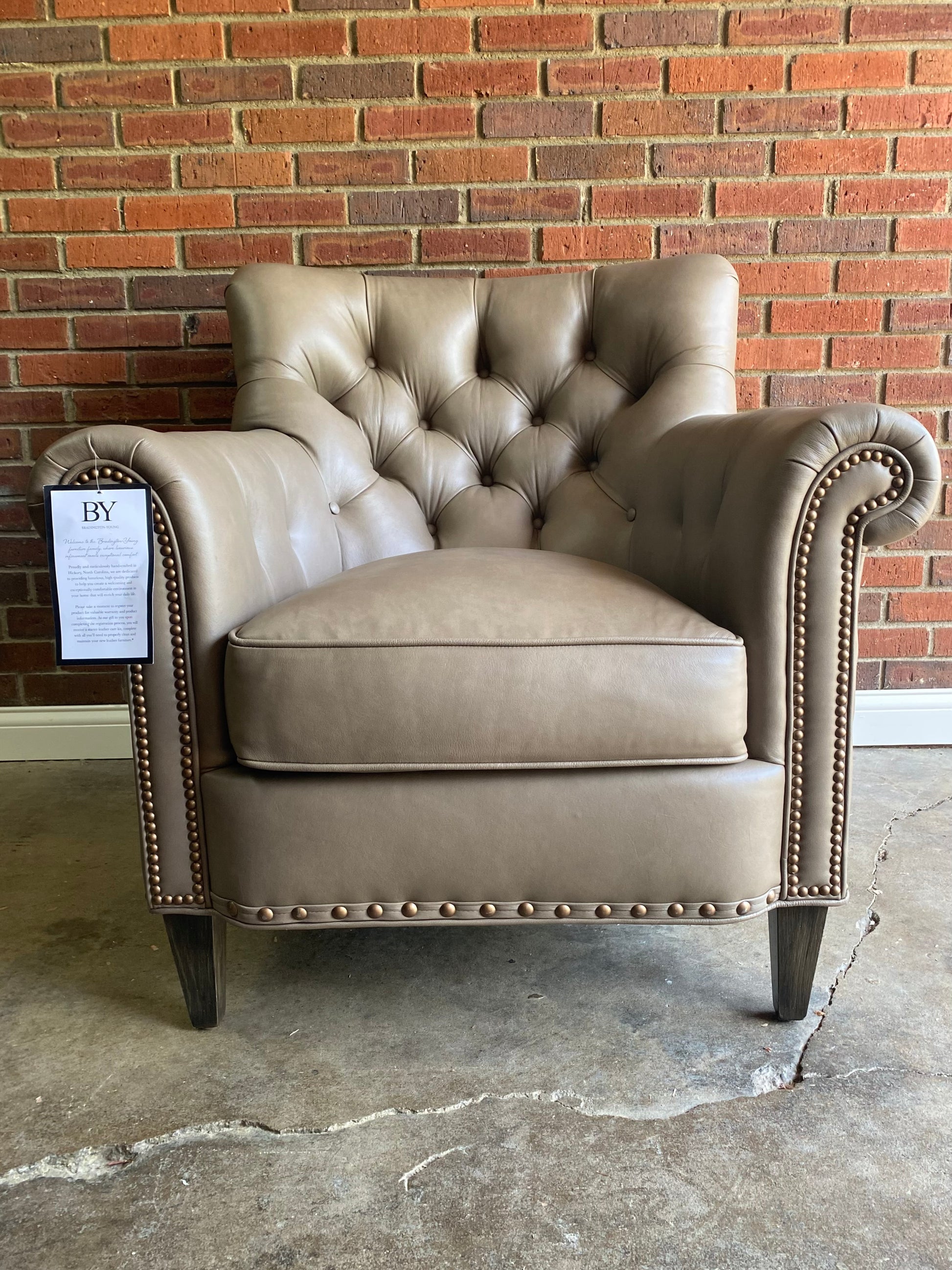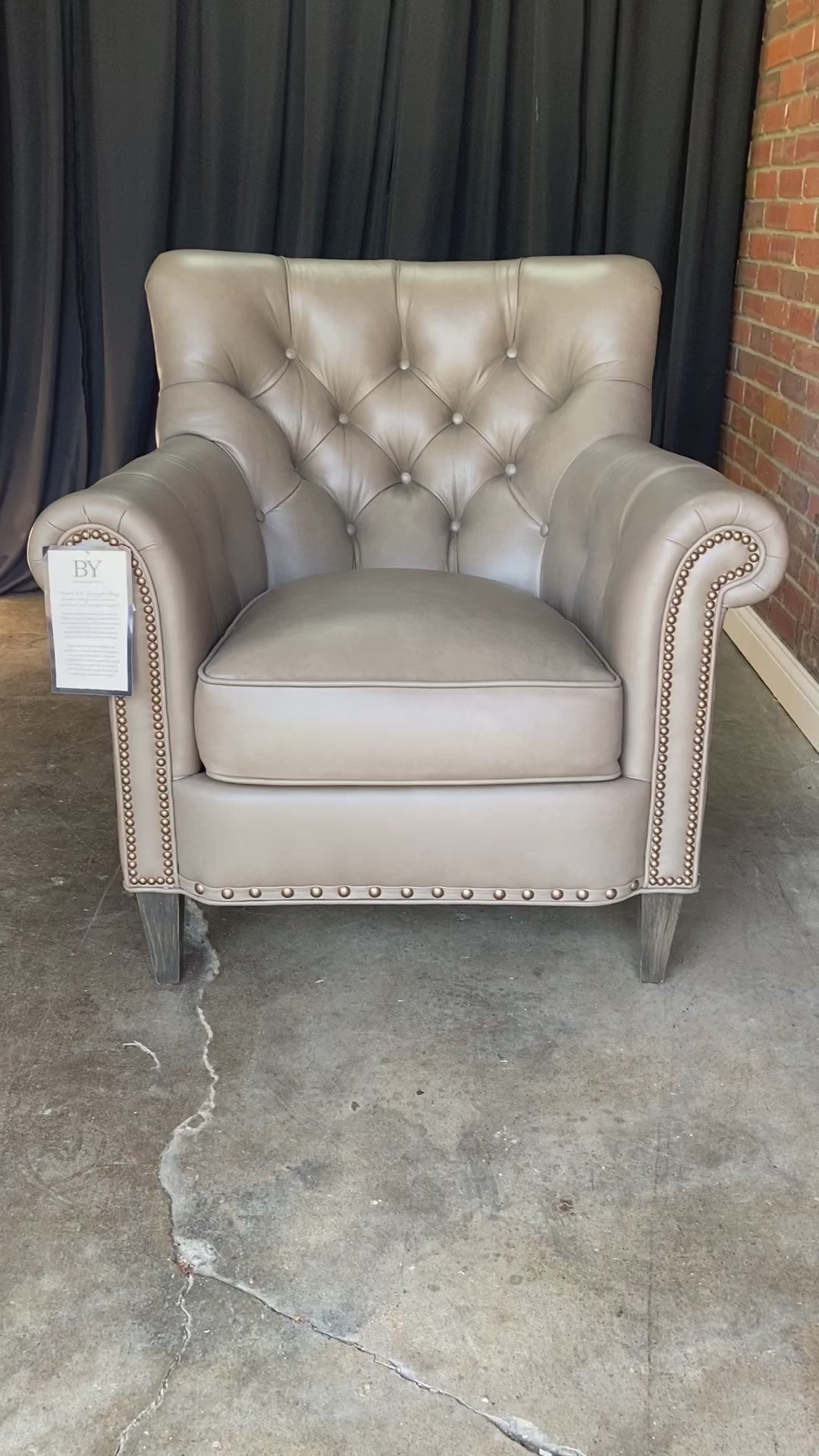 “The Kirby Stationary Chair includes standard nailhead trim. Comes with a standard mahogany finish. It features a tufted seat back and a premier down seat. Providing both functionality and comfort, club chairs can set the tone for the rest of the room. Equally at home in the living room or bedroom as they are in the home office or family room, these versatile pieces can transform an otherwise predictably-styled room into one that mixes traditional design with modern convenience.”