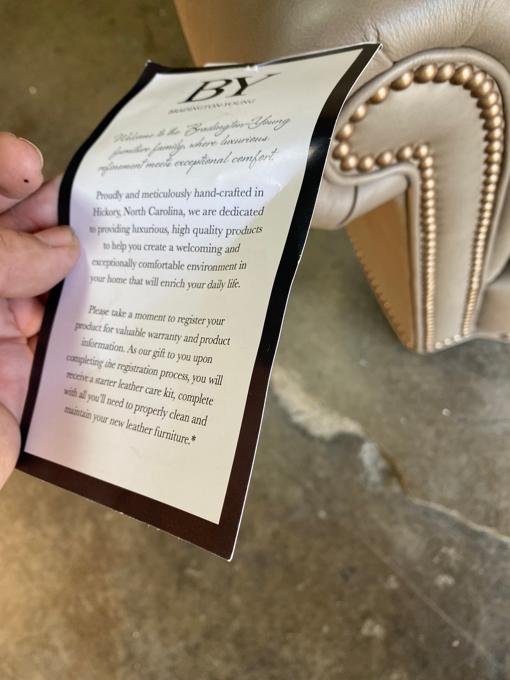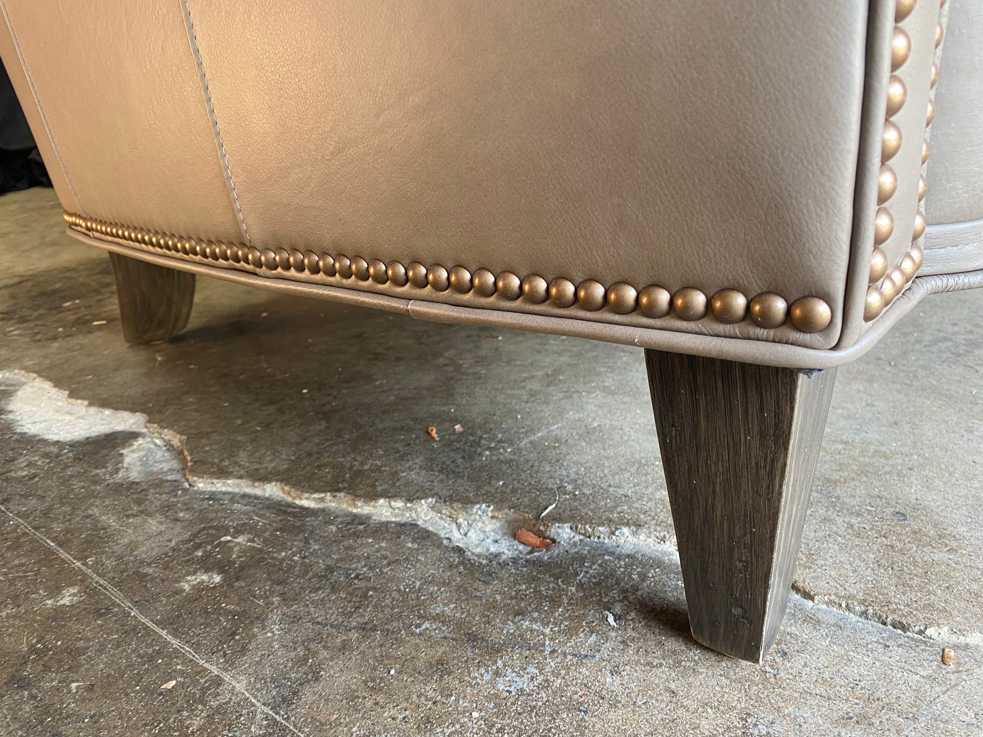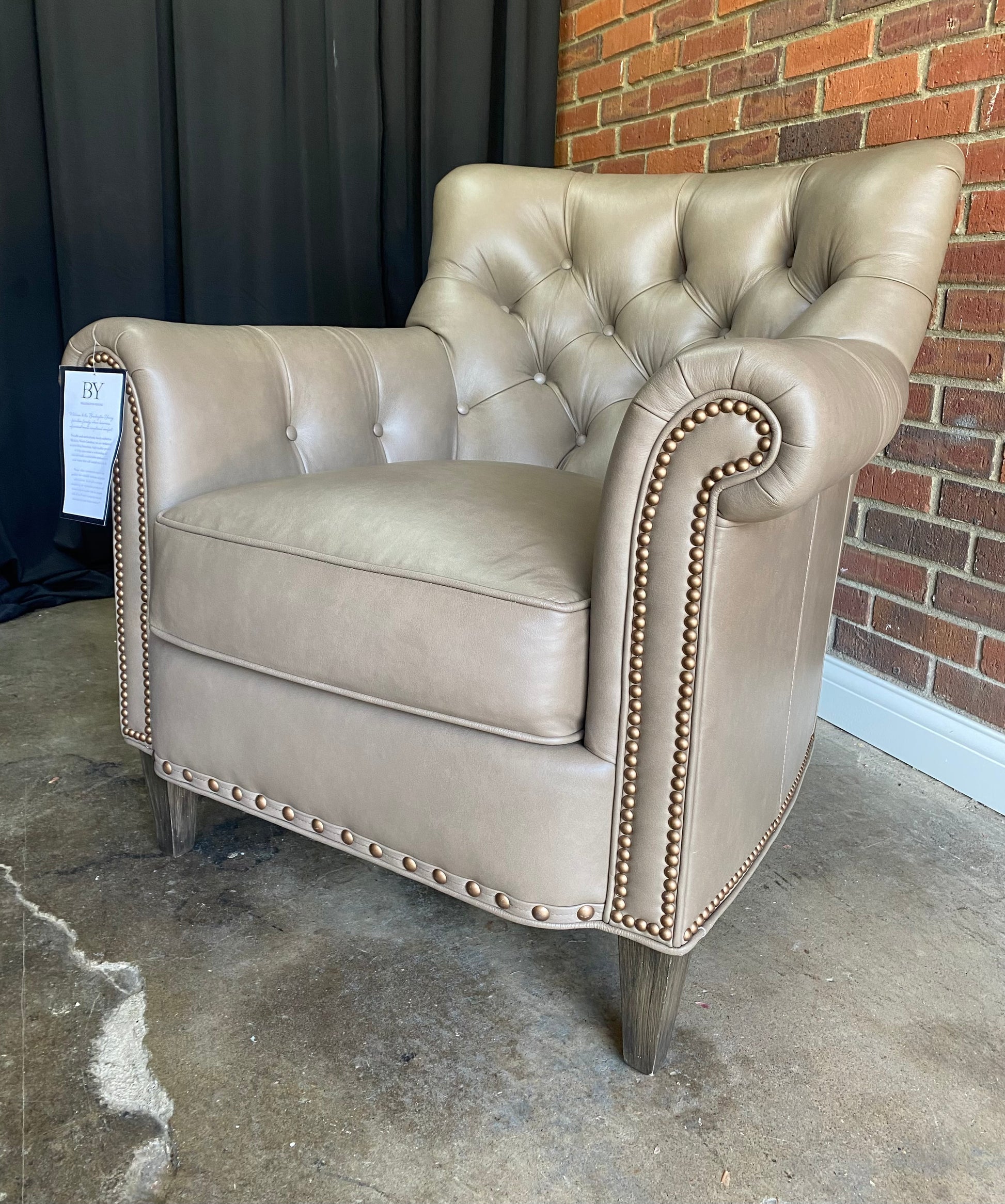 “The Kirby Stationary Chair includes standard nailhead trim. Comes with a standard mahogany finish. It features a tufted seat back and a premier down seat. Providing both functionality and comfort, club chairs can set the tone for the rest of the room. Equally at home in the living room or bedroom as they are in the home office or family room, these versatile pieces can transform an otherwise predictably-styled room into one that mixes traditional design with modern convenience.”