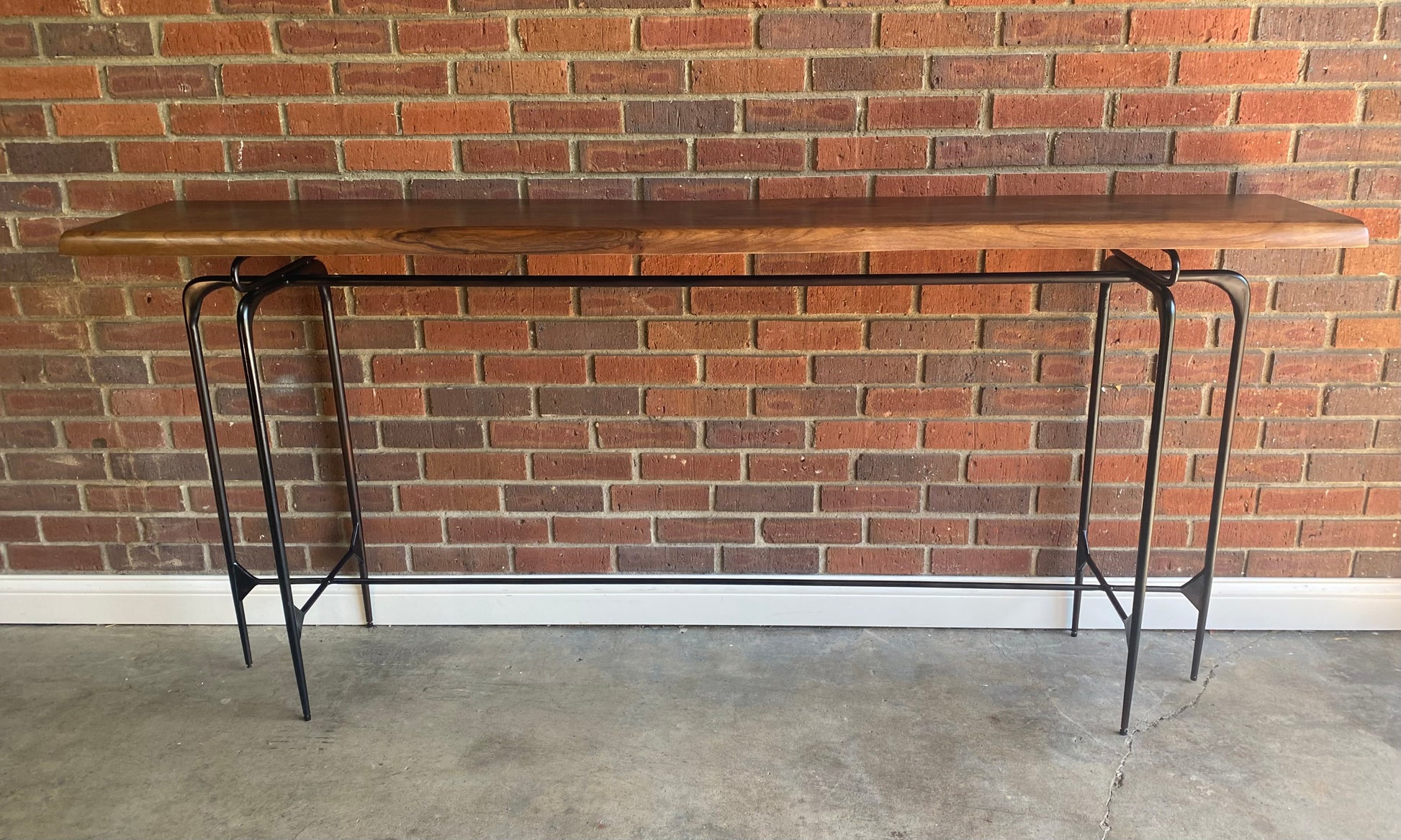New! MCM Custom Hall Console Table 78”. Live Edge Walnut Top