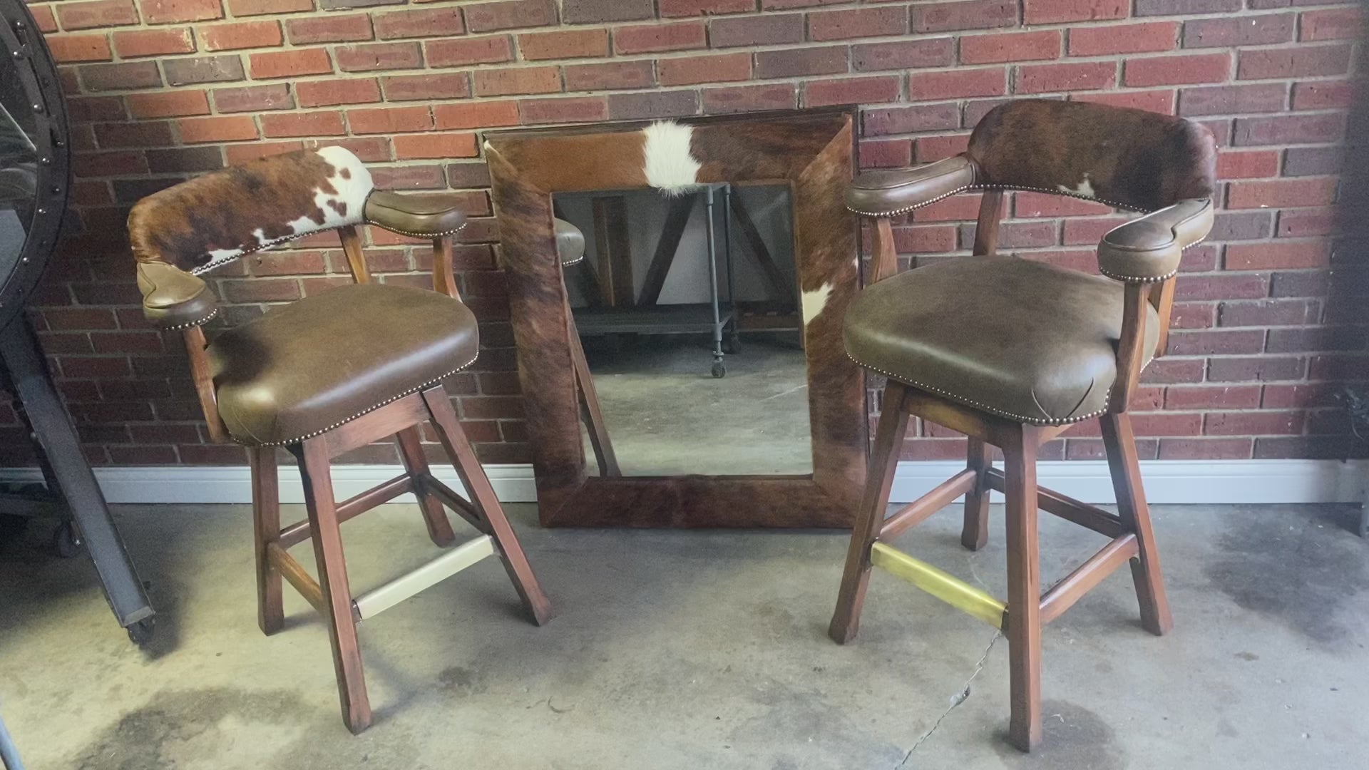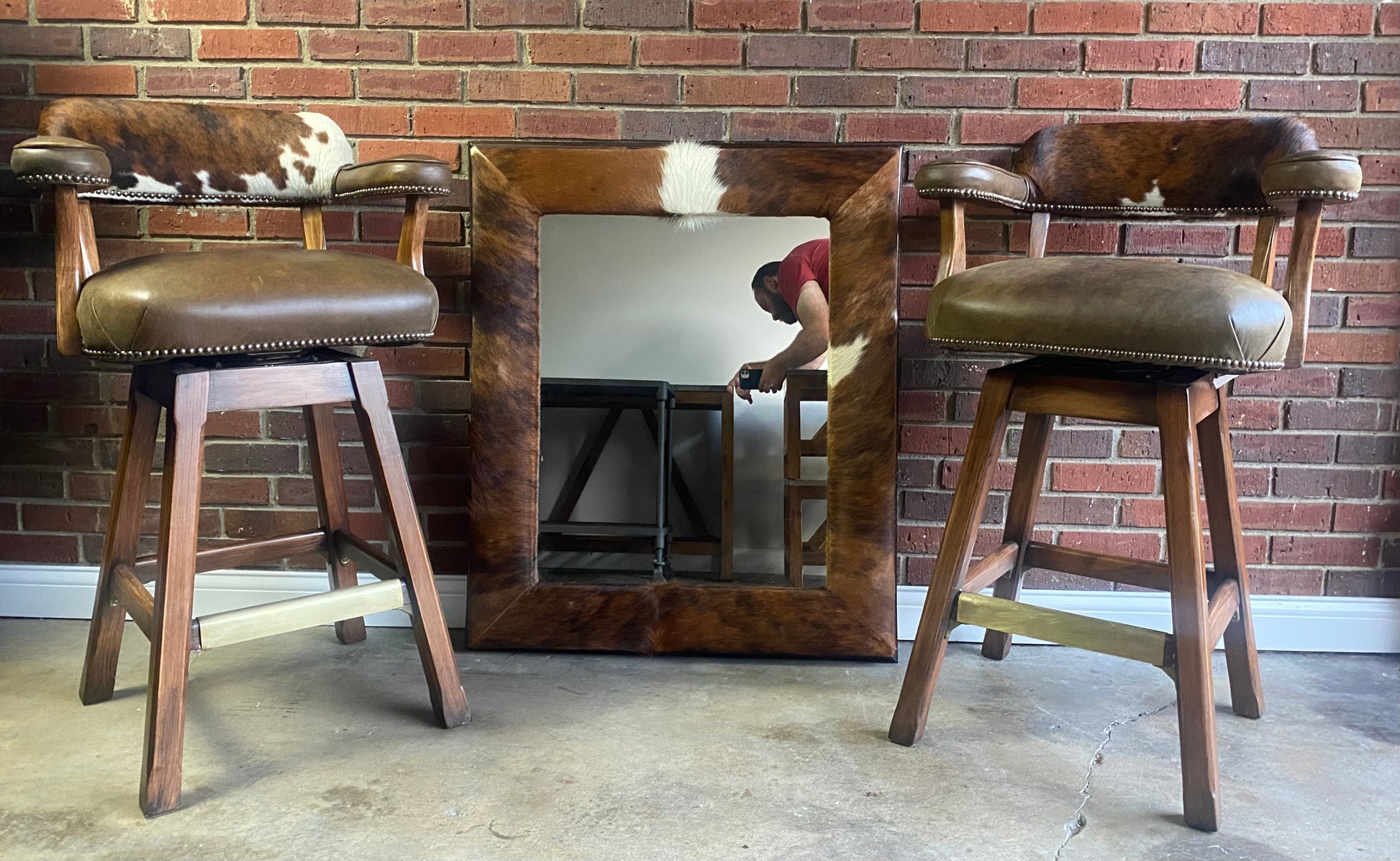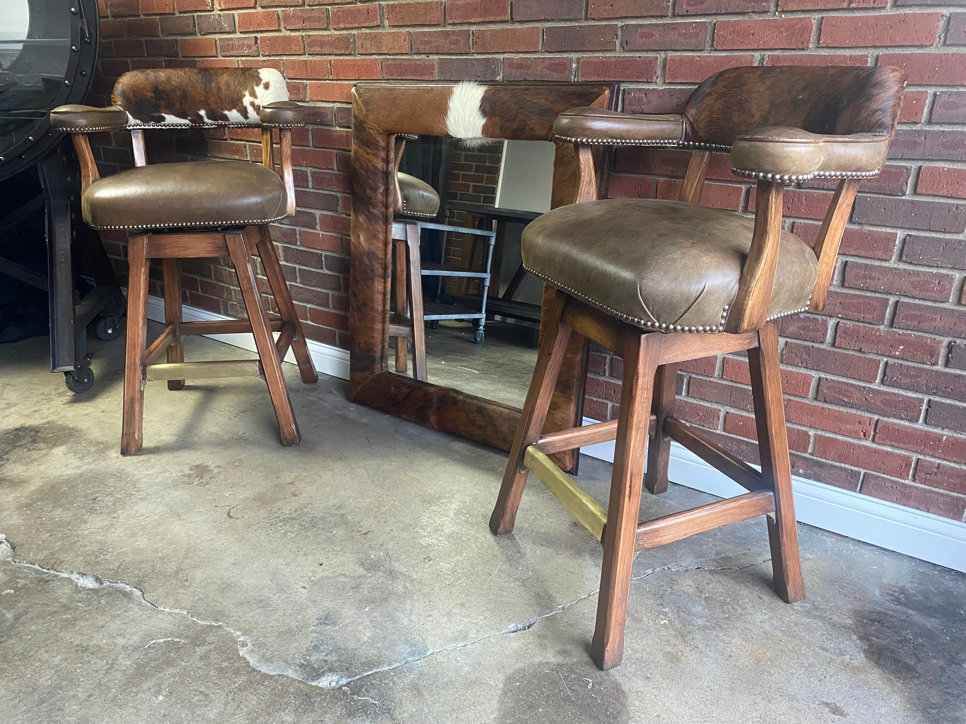 Old Hickory Tannery, Custom Barstool and Mirror Set
